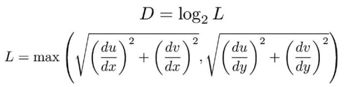 What I think about level sampling is that it takes into account the depth of the picture such that the image has a 3D perspective instead of looking 2D. In addition, taking into account level sampling makes the image look more realistic as it allows the human eye to see an image that is more realistic. We implemented texture mapping by taking if statements on psm and lsm. Using lsm to find the specific level of the triangle that we are trying to texture with, and to get the level, we used the following formula for it.