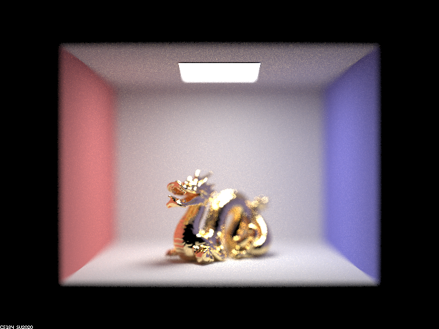 Show a screenshot sequence of 4 images of scene `CBdragon_microfacet_au.dae` rendered with $\alpha$ set to 0.005, 0.05, 0.25 and 0.5. The other settings should be at least 128 samples per pixel and 1 samples per light. The number of bounces should be at least 5. Describe the differences between different images. Note that, to change the $\alpha$, just open the .dae file and search for `microfacet`.