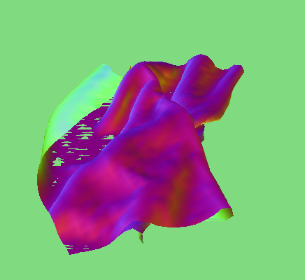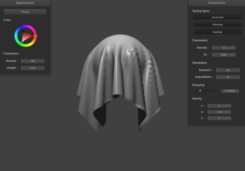 For Blinn-Phong shading, we took into consideration of the ambient light component and specular reflection component to the diffuse lighting to create a more realistic view of the sphere over the cloth because only with the diffuse lighting, it does not recreate the realistic view, and with the ambient light and specular reflection component, it shows more realistic view. With Blinn-Phong shading, as we took into account the angle between the source position and the surface normal, as well as the light source position, we were able to create a more realistic and accurate real life image.