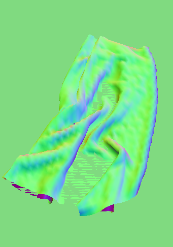 For displacement mapping, our sphere is evidently much bumpier than the sphere in bump mapping, and once the cloth falls down, the folds for displacement mapping are also larger. Furthermore, when we change the sphere mesh’s coarseness, the image we see with -o 128 -a 128 is clearer than -o 16 -a 16.